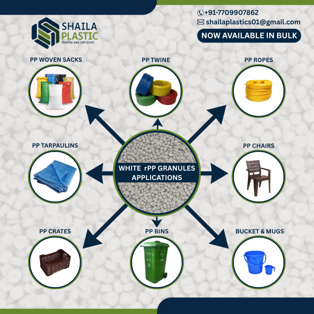 At Shaila Plastic, we specialize in the high-volume production of Recycled Polypropylene (rPP) granules, offering a versatile and eco-friendly solution for modern manufacturing. Driven by our core philosophy—“Where Quality Meets Sustainability”—we transform plastic waste into consistent, high-grade resin that serves as a “Quality you can trust” alternative to virgin materials.